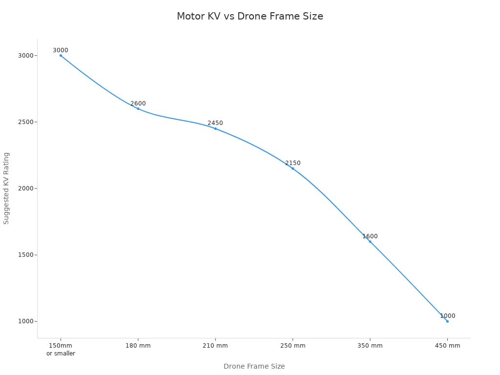 Choosing the right RPM for your drone ensures safe, efficient, and powerful flight. You should always match motor KV, propeller size, and battery voltage to your drone’s frame and purpose. Use calculation guides and reference tables to select the best setup for your needs. The table below shows how to pair frame size, propeller, and KV for optimal results: