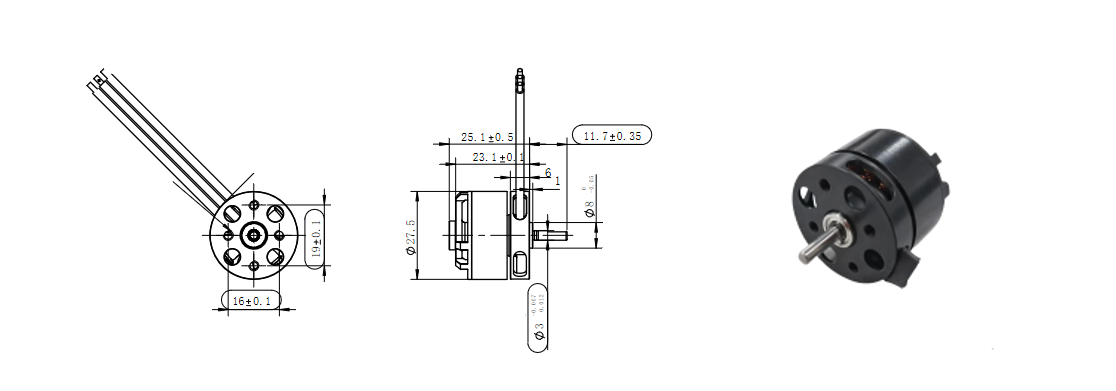 | Max. P(W) | Voltage(V) | Max. I.(A) | KV | No-load Current(A) | Resistance(mΩ) | Poles | Motor Dim.(mm) | Stator Dim.(mm) | Mounting (mm) | N.W.(g) | Prop.(inch) | |||||||