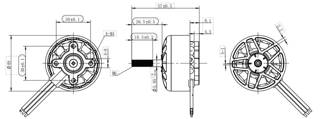 | Max. P(W) | Voltage(V) | Max. I.(A) | KV | No-load Current(A) | Resistance(mΩ) | Poles | Motor Dim.(mm) | Stator Dim.(mm) | Mounting (mm) | N.W.(g) | Prop.(inch) | |||||||